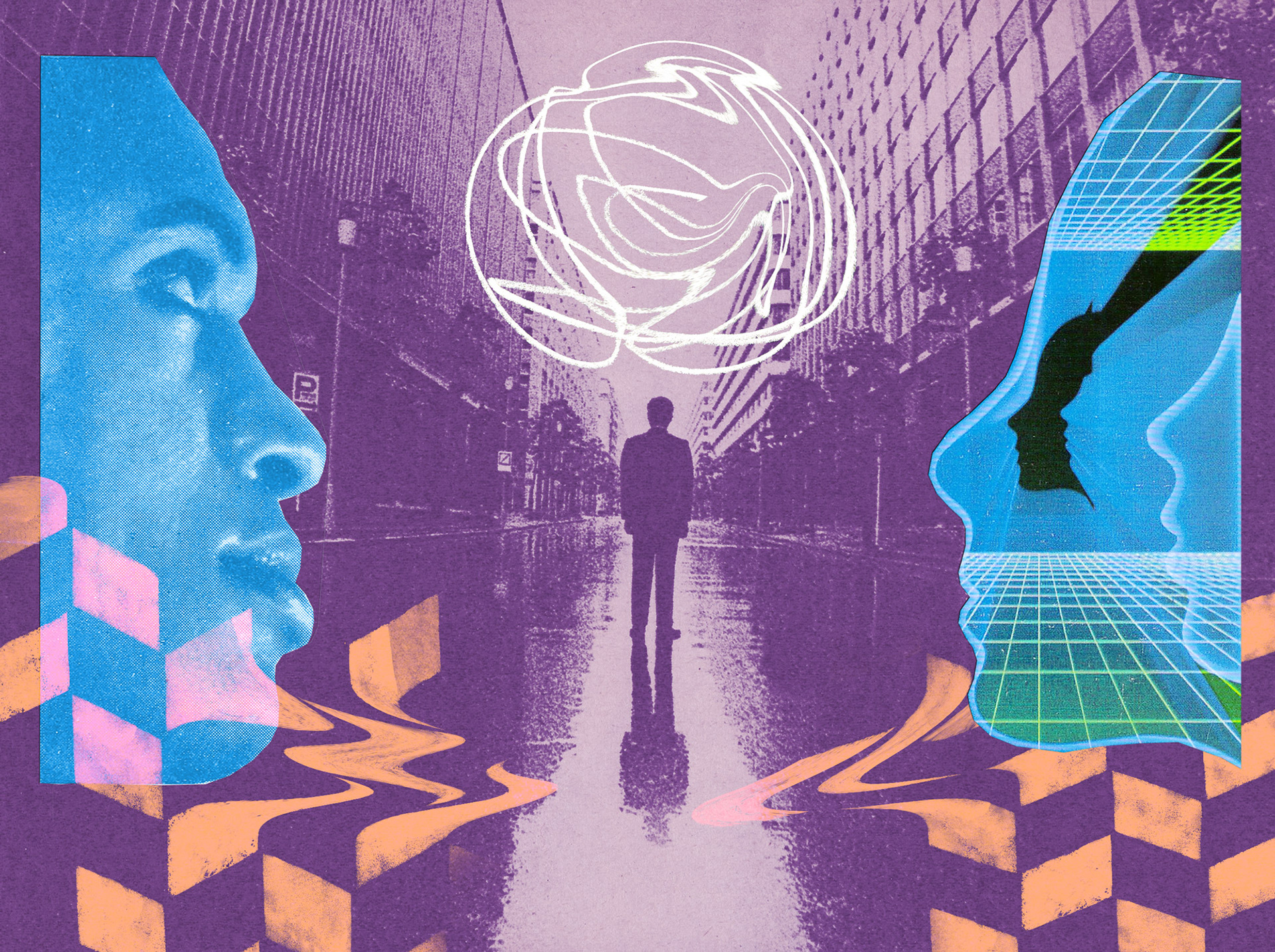 I combined analog and digital collage art with hand drawing and stencil in this commission for Betaworks.