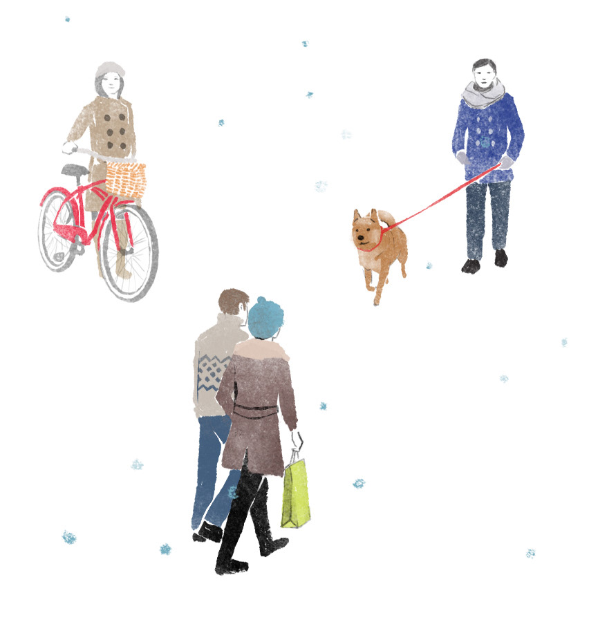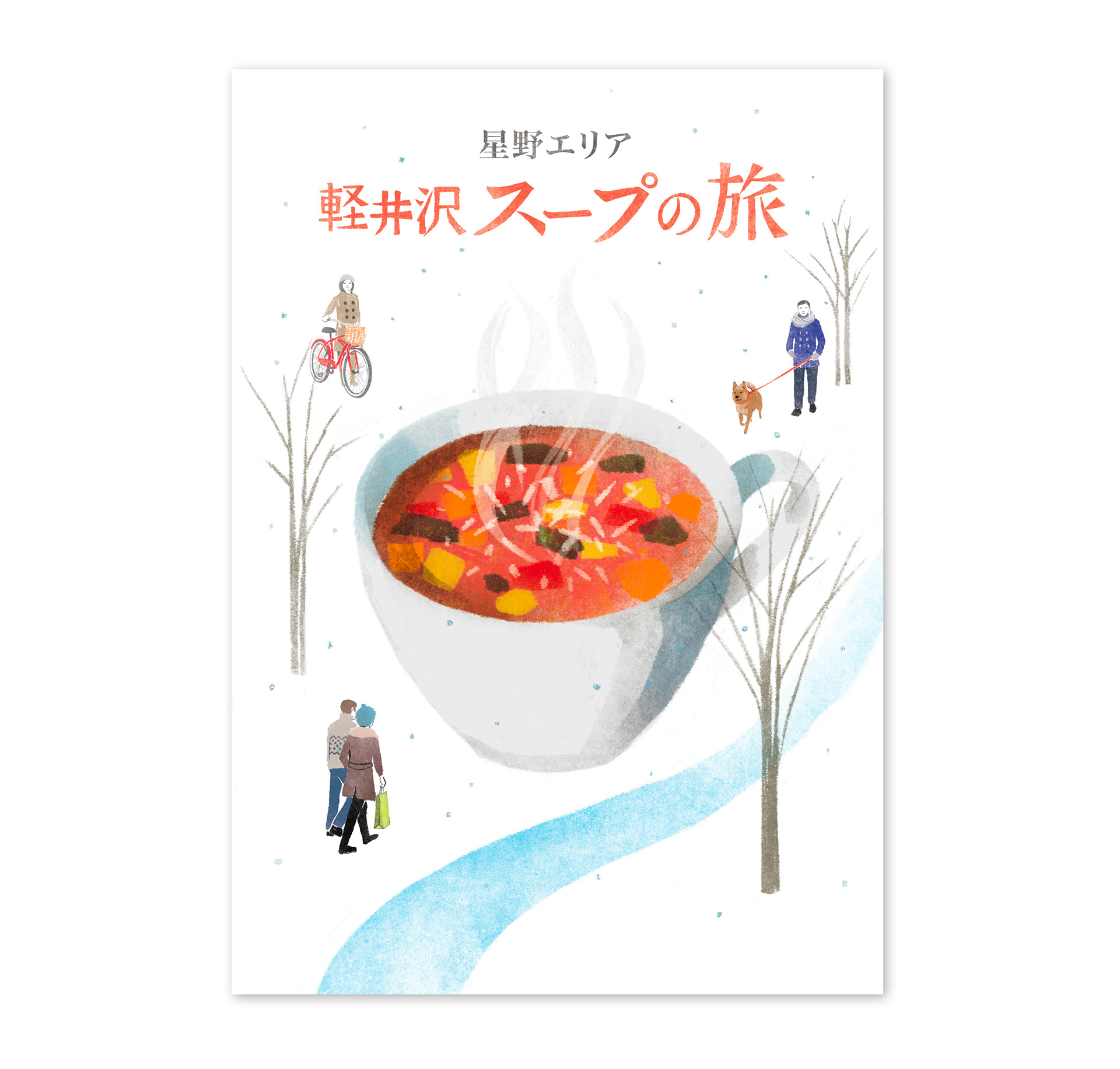 Cover artwork for a brochure on local restaurants participating in a warming soup event in wintry Karuizawa, Japan.